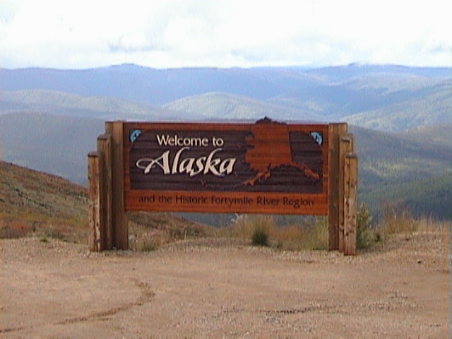 Nach einiger Zeit erreichen wir dann die Grenzstation Poker Creek. Hier ist ja nun wirklich überhaupt nichts los und so ist der nette US-Grenzbeamte sehr freundlich. Das Formular, daß man bei der Einreise immer ausfüllen muß (W94 oder so ähnlich) gibt er uns auch auf Deutsch und wie man dann halt so drin ist, schreibe ich bei dem Land aus dem ich komme "Deutschland" anstatt "Germany". Aber selbst das ist kein Problem und daß mir schon mal ein Visum verweigert wurde beachtet er garnicht. Dafür kriegen wir einen super genialen Stempel in den Pass.