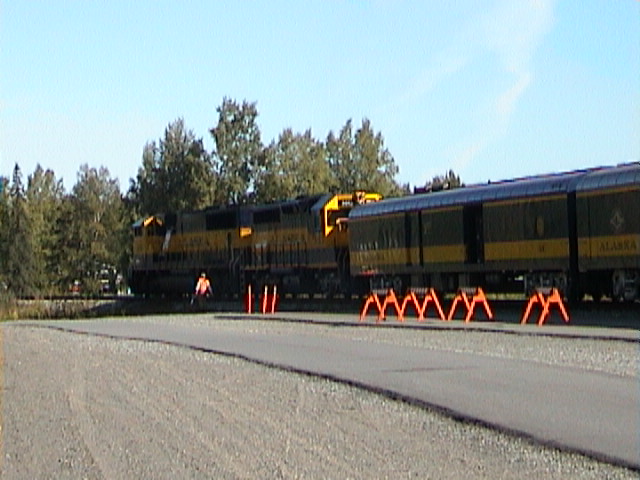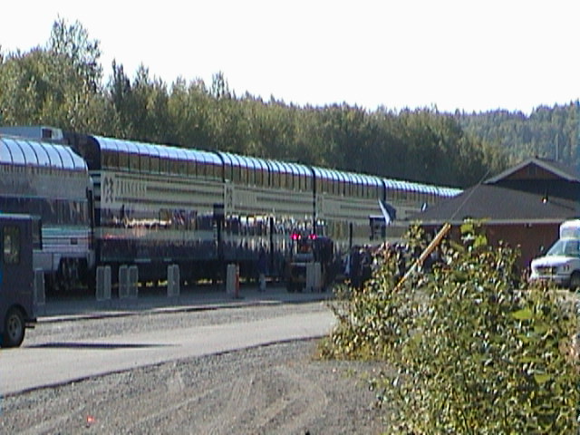 Jörg verknipst 2 1/2 Filme und ich muß auch die Kassette in meiner Videokamera wechseln. Insgesamt filme ich 25 Minuten. Irgendwann tut mir schon der Arm weh vom Halten der Kamera. Nach 1,5 Stunden landen wir wieder in Talkeetna. Der Flug war richtig genial und es tut mir wegen der 185 Dollar auch nicht mehr leid. Wir schauen uns noch ein bißchen in Talkeetna um und fahren dann in Richtung Anchorage. Die Fahrt ist relativ unspektakulär, vor allem nach dem Flug. In Wasilla holt sich Jörg eine Pizza bei Pizza Hut und ich mir etwas bei McDonald's. Kurz nach dem Weiterfahren sehen wir ein Arby's und ich könnte mir echt in den Hintern beißen. Für alle die es nicht wissen, bei Arby's gibt es extrem leckere Roastbeef-Burger und ich freu mich jedesmal drauf, wenn ich in den USA bin. Aber für jetzt bin ich satt und so ist es auch egal und wir fahren weiter. Die Straße sieht jetzt aus wie eine Autobahn und ist auch ganz schön voll. In Anchorage nehmen wir einen RV Park, der so dicht an Downtown dran ist, daß man zu Fuß gehen kann. Mir ist das schon nicht ganz geheuer (die größeren Städte in den USA sind ja nicht so toll), aber Jörg stiefelt los und da muß ich wohl mit. Anchorage ist eine ziemlich häßliche Stadt und abends ist nicht mehr viel los. Die einzigen Leute die man trifft sind andere Touristen (erkennt man sofort) und schräge Gestalten. Jörg läßt sich davon nicht stören und fotografiert fröhlich drauf los. Ich laß meine Kamera lieber in der Tasche. Nachdem wir eine Stunde lang rumgerannt sind, gehen wir zurück zum RV Park und legen uns schlafen. Naja, schlafen ist gut. Der RV Park liegt zwar nahe an der Innenstadt, aber auch nahe der Elmendorf Air Force Base (man weiß ja wie laut startende Kampfjets sind), nahe dem Zivilflughafen (startende Cessnas sind auch nicht gerade leise) und direkt an der Strecke der Alaska Railroad. Wenn ein Zug vorbeifährt, dann dröhnt es total in unserem Schlafmobil. Vor allem bei Güterzügen, wo auch schon mal drei Loks dranhängen, die dann auch Vollgas geben. Auch hört man lauter Schrankensignale und die Tröte der Lok, die jedesmal, wenn sie über eine Schranke fährt, trötet. Manche Lokführer sind ja ganz nett und tröten nur ganz kurz. Andere hingegen tröten wohl nach der Devise "Wenn ich nicht schlafe, schlaft ihr auch nicht". Also zusammenfassend: Es ist sehr, sehr laut. Naja, dafür regnet es nicht.