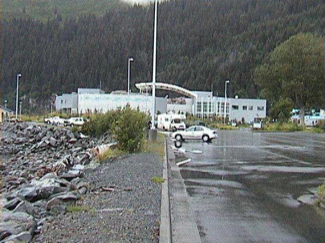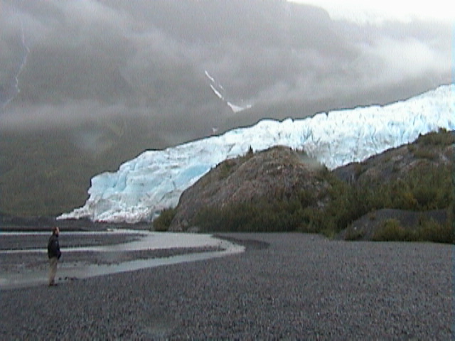 Wie ihr seht, ist das Sealife Center ziemlich klasse. Ich kauf mir gleich noch ein T-Shirt (übrigens mein fünftes) und dann geht es per Auto zum Exit Glacier, einem Gletscher, der ungefähr 13 Kilometer von Seward entfernt ist. Mittlerweile regnet es ziemlich stark und so rennen wir schnell mal vom Parkplatz zum Gletscher, machen ein paar Fotos und rennen zurück. Jörg ist dann so naß, daß er sich erstmal eine andere Hose anzieht. Ich hatte ja einen Regenschirm...