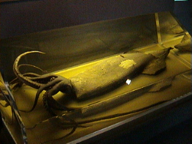Dieses Vieh ist tatsächliche 2 Meter lang (ohne die Tentakel) und wurde irgendwann mal an der Küste angespült. Heute liegt es eingelegt in Alkohol im Sealife Center.