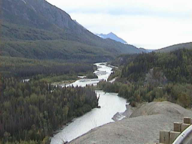 Jetzt müssen wir aber wirklich los, denn eigentlich wollten wir heute noch bis Valdez fahren. Aber da es schon halb zwei ist, wird daraus wohl nichts mehr. Wir fahren erstmal bis nach Anchorage zurück und essen was. Danach gehts auf dem Glenn Highway nach Osten. Die Strecke ist echt toll, schon deswegen, weil es aufhört zu regnen. Aber viele Bäume verfärben sich schon herbstlich und es sieht ziemlich genial aus.