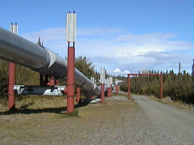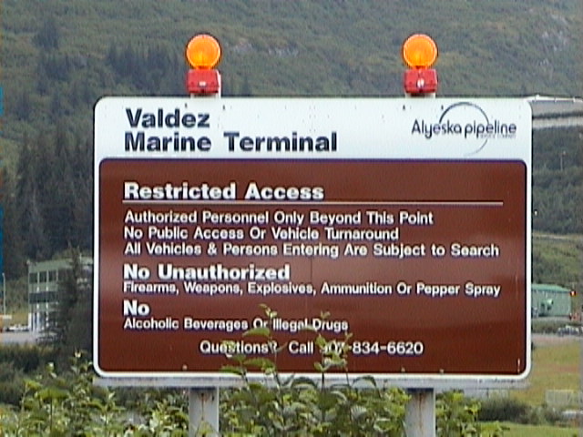 Die Fahrt geht weiter und ab und zu kommt mal ein "Pipeline Viewpoint". Nach einiger Zeit erreichen wir die Pumpstation 12, die Letzte der Pipeline vor Valdez, wo das Öl auf die großen Tanker gepumpt wird. Die Pumpen in der Station schaffen bis zu 50000 Gallonen (3,8 Liter) pro Minute, das sind 1,7 Millionen Barrel pro Tag. Ganz schön. Jörg fängt an zu spekulieren, wie sich der Weltmarktpreis für Öl verändern würde, wenn man hier einen Anschlag verübt. Immer diese destruktiven Menschen. Das Wetter wird jetzt mal wieder schlechter und so fahren wir durch bis Valdez, wo übrigens mal wieder (wenigstens zeitweise) die Sonne scheint. Komisches Wetter ist das hier. In Valdez ist eigentlich auch nicht so viel los.