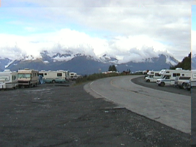 Bis Tok ist es noch ein ganz schön weiter weg und so schrubben wir jetzt ordentlich Kilometer/Meilen. Viel zu sehen gibt es nicht und regnen tut es auch mal wieder. Langsam haben wir extremen Hunger, denn außer den Keksen zum Frühstück hat es heute noch nichts gegeben. Und wir freuen uns schon tierisch auf "Fast Eddy's", wo wir auf der Hinfahrt schonmal gegessen hatten. Als wir dann endlich kurz vor 8 dort ankommen, hauen wir erstmal richtig rein und als Nachtisch gönn' ich mir diesmal eine "Bowl of Vanilla Ice Cream", die mindestens 7 Kugeln Eis enthält. Gleich neben "Eddy's" gibt es einen RV Park. Das Büro ist schon geschlossen, aber man soll sich einfach bei der Texaco Tankstelle gegenüber melden. Also tanken wir auch gleich noch und beziehen dann unseren Stellplatz. Dieser RV Park ist aber der beste von allen, die wir bis jetzt hatten und ich finde endlich einen Modemanschluß um die Webseiten auf den Server zu packen. Das ganze dauert erstmal 1,5 Stunden, weil die blöde Verbindung zu AOL so langsam ist. Naja. Aber wenigstens kriegen wir endlich mal wieder mit, was so in der Welt passiert. Irgendwann gegen 0 Uhr ist dann endlich alles im Netz, ich hab alle eMails geschrieben und kann endlich schlafen gehen. Jörg liegt da bereits seit einer Stunde im Bett.