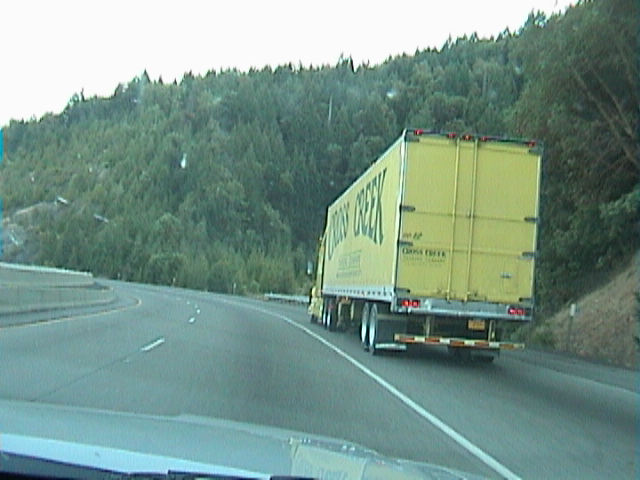 Da wir langsam etwas Durst haben, halten wir bei Burger King und holen uns eine Kingsize Coke. Ich weiß garnicht, wieviel da drin ist, aber es ist mindestens ein Liter, eher noch mehr. Als wir zurück auf die Interstate fahren, gibt es plötzlich einen Stau und die Feuerwehr hat die Straße komplett gesperrt. Alle müssen an der nächsten Abfahrt runter. Von der Interstate aus sehen wir einen Wal-Mart und da Jörg mal nach ein paar CDs schauen wollte, fahren wir da mal hin. Jörg kauft sich dann zwei CDs. Einmal Garbage und einmal Avril Lavigne. Endlich haben wir mal ein wenig Musik für den Auto-CD-Player und müssen nicht alle 10 Minuten den Radiosender neu einstellen. Der Stau ist immer noch da und so fahren wir eine Straße, die parallel zur Interstate geht. An der nächsten Auffahrt können wir aber wieder rauf. Es geht nun bergauf zur Grenze zwischen Oregon und Kalifornien.