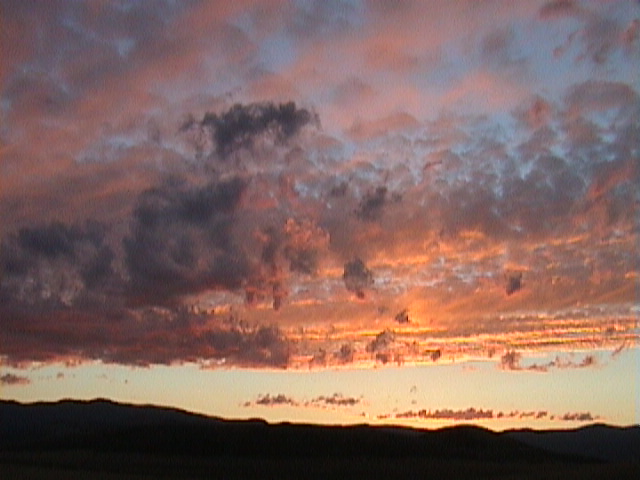 An der Grenze gibt es eine total sinnlose Kontrolle, wo man anhalten muß und gefragt wird, ob man Nahrungsmittel oder Pflanzen dabei hat. Wenn man nein sagt, dann kann man gleich weiterfahren. Was für ein Quatsch. Langsam geht die Sonne unter (relativ früh, wenn man vorher so weit im Norden wahr) und der Himmel verfärbt sich richtig toll.