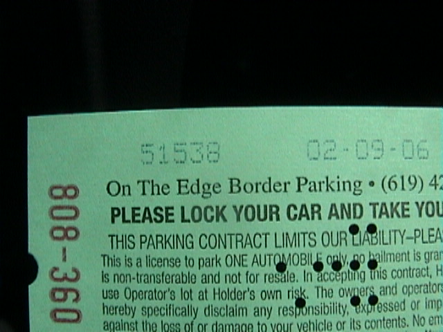 Die Nacht war ein bißchen unruhig. Die Eismaschine stand ziemlich dicht an unserem Zimmer und irgendwelche Leute haben die ganze Nacht Eis geholt und das war nicht gerade leise. Während der Nacht hat es auch geregnet und es ist nun ziemlich schwül und unangenehm. Also setzen wir uns ins Auto, schmeissen die Klimaanlage an und fahren Richtung Mexiko. Es geht fünfspurig in unsere Richtung und Jörg hat wieder ganz schön mit dem Fahren zu tun. An der letzten Abfahrt in den USA fahren wir ab und parken auf einem der großen Parkplätze. Alles ist hier auf Tagestouristen ausgelegt.