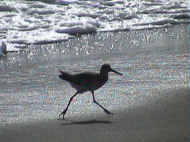 Dieser lustige Vogel rennt immer vor den Wellen weg und sucht aber im feuchten Wasser nach was zu essen.