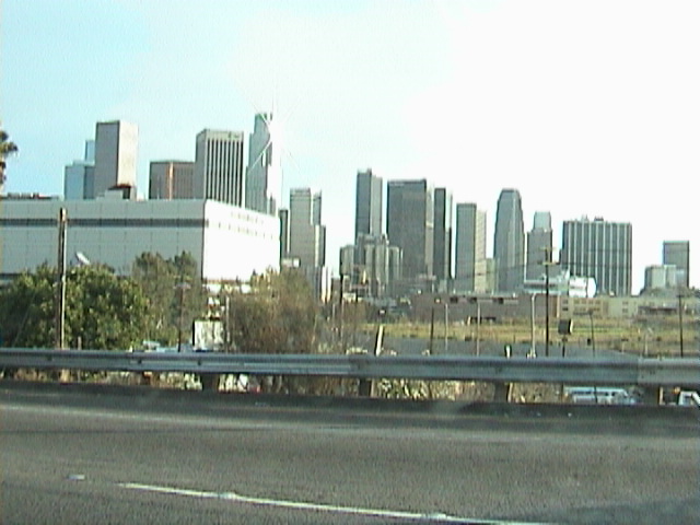 Kurz vor der Grenze gibt es komischerweise mehrere Fahrradverleihstationen. Es klärt sich aber schnell auf, wofür die da sind. Wenn man mit einem Fahrrad über die Grenze will, dann muß man sich nicht bei den Fußgängern anstellen, sondern hat eine extra Spur und kommt so in 5 Minuten rüber. Wir gehen aber zu Fuß und müssen uns mit allen anderen anstellen. Es ist total warm in dem Kontrollgebäude. Das ist aber auch kein Wunder, denn draußen sind bestimmt 35 Grad. Wir stehen ein Weilchen und werden dann von einer total gelangweilt dreinschauenden Beamtin kontrolliert, die kein Wort sagt, aber dafür unseren Paß durch ein elektronisches Lesegerät zieht. Wir können passieren und stehen nun wieder in den USA. Ich glaube, so müssen sich früher die Wessis (sorry für den Ausdruck, aber ich sage ja auch Ossis) gefühlt haben, wenn sie in der DDR waren. Da wir wegen der Hitze großen Durst haben, gehen wir erstmal 20 Meter hinter der Grenze zu McDonald's. Irgendwie ist das total kraß: Die meisten der Mexikaner auf der anderen Seite werden nie in ihrem Leben die Möglichkeit haben, diese Grenze zu passieren und wir spazieren hier fröhlich hin und her, kaufen uns noch T-Shirts als Souvenir und gehen dann erstmal zu McDonald's. Mmmh, da wird man schon nachdenklich... Wir fahren jetzt aber wieder nach Los Angeles, denn wir wollen uns da mal noch ein bißchen was anschauen. Es herrscht mal wieder dichter Verkehr, aber ab und zu können wir eine Carpool-Lane benutzen.