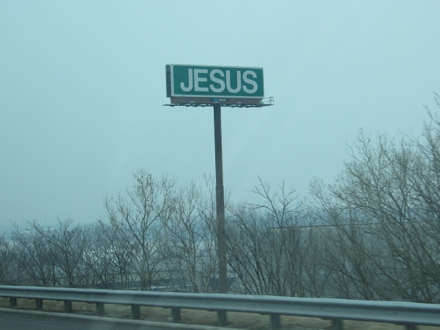 Am Straßenrand von der Interstate (sowas wie eine Autobahn) stehen andauernd diese riesigen Reklametafeln. Für was und wie da aber auch geworben wird... Es gibt Werbung für ein "Altenheim St. Louis" (da steht wirklich das deutsche Wort Altenheim!), für ein "Wunderbares" Oktoberfest und natürlich für Jesus. Hier mal ein paar Beweise: