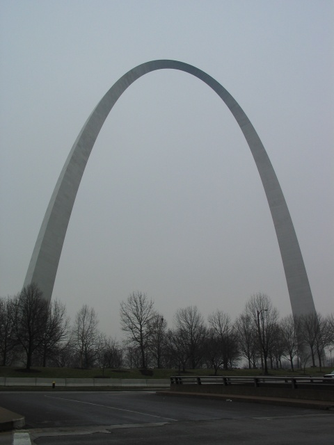 Die Innenstadt von St. Louis ist eigentlich nicht unbedingt sehenswert. Es gibt häßliche Häuser und nicht ganz so häßliche. Und es dampft mächtig aus den Gullideckeln. Wir fahren in ein Parkhaus und laufen zu der Hauptsehenswürdigkeit, dem Gateway Arch. Das ist ein riesiger Bogen, der das Tor zum Westen symbolisieren soll. Denn hier in St. Louis begann die Erforschung des Wilden Westens, zum Beispiel durch die Expedition von Lewis und Clark am Missouri entlang.