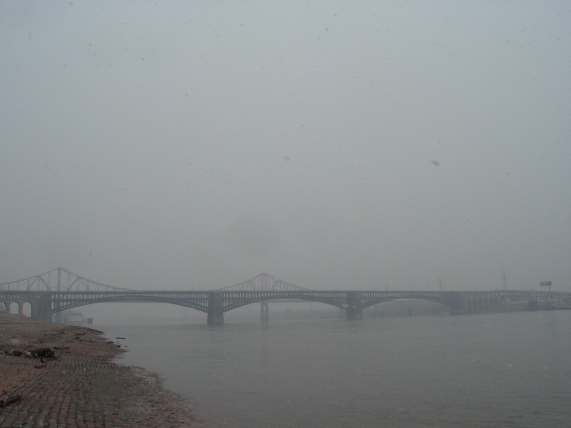 Der Mississipi im Schneetreiben. Auf der anderen Seite ist man schon im Bundesstaat Illinois. |