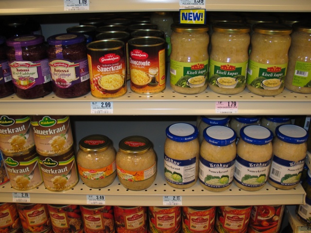 Die deutsche Sauerkrautecke. Rotkohl gibt es auch, wie ihr seht. |