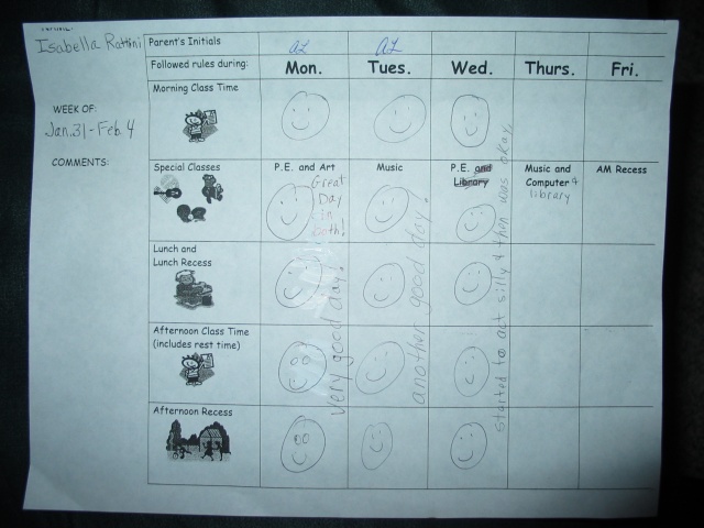 Hier sieht man, daß Isabella schon die ganze Woche über lieb in der Schule war. |