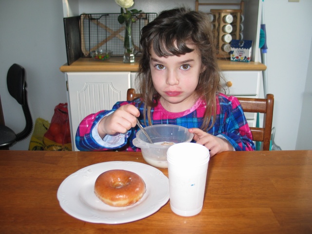 Honeynut Cherios und ein in der Mikrowelle erwärmter Doughnut. |