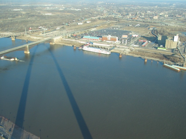 Nach circa 3 Minuten Fahrt ist man dann oben und kann durch relativ kleine Fenster rauskucken. Man sieht ganz St. Louis und den Mississippi.