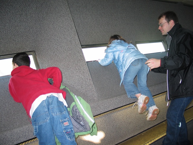 Amy ruft an und sagt, daß sie in 10 Minuten da ist und wir dann los können. Gesagt, getan, wenig später machen wir uns auf den Weg, holen die Kinder früher aus der Schule und fahren zum Gateway Arch. Nick und Bella waren da nämlich auch noch nicht drauf und da können wir das gleich zusammen machen.