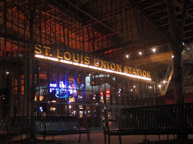 Das Hard Rock Cafe befindet sich in der St. Louis Union Station, das war hier einmal der größte Bahnhof. Früher war St. Louis wegen seiner Lage ein unheimlicher Verkehrsknoten und so ist die Union Station riesig. Allerdings fahren hier keine Züge mehr, sondern man hat die Fläche unter der großen Halle mit Geschäften, Kneipen und Restaurants richtig schick ausgebaut.
