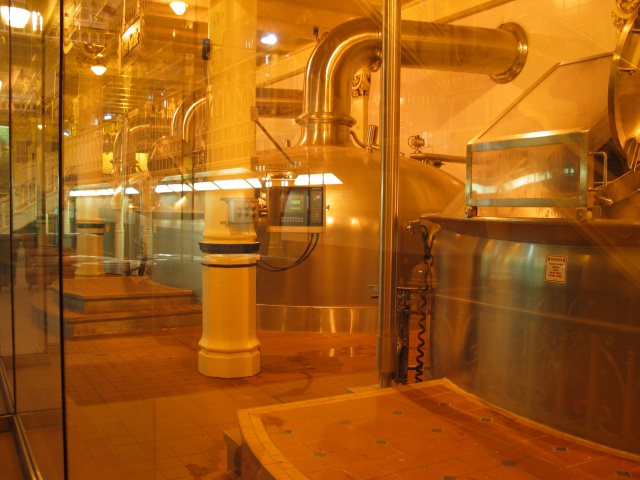 Es geht nun weiter in einen Raum, wo das Bier in großen Tanks reift, oder so ähnlich, bin ja kein Bierfachmann. Auf jeden Fall sind die Tanks riesig und laut Aussage von Monique, unserem Tourguide, gibt es davon ganz viele. Die genaue Zahl hab ich jetzt vergessen, aber es war schon mächtig gewaltig. Fotos darf man dort leider nicht machen, denn wer weiß, vielleicht sind ja böse Industriespione unter den auf das Freibier geifernden Besuchern.