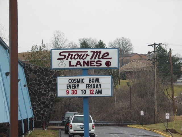 Die "Show Me Lanes". Das "Show Me" kommt aus dem inoffiziellen Spruch des Bundesstaates Missouri, so steht zum Beispiel auf allen Nummernschildern "Missouri - Show Me State". |