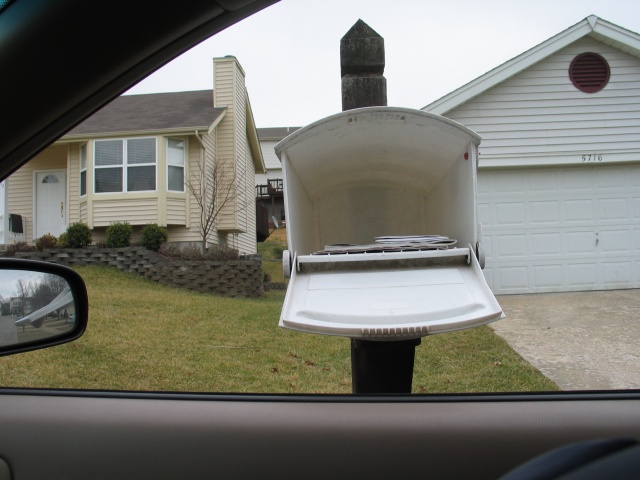 Hier seht ihr mal, wie in den USA der Briefkasten geleert wird. Man fährt einfach mit dem Auto ran, bevor man in die Garage reinfährt. Voll easy, wa? |