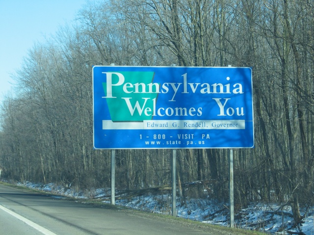 Irgendwie erwische ich auch genau die richtige und eine der wenigen Stellen, wo man direkt an den See kann. Das restliche Ufer ist von raffgierigen Grundstückshaien schon an Menschen verscherbelt worden, die unbedingt Seeblick haben wollten. Nachdem ich nun noch ein bißchen durch die Suburbs gefahren bin, geht es zurück zur Interstate und ab Richtung Buffalo, New York. Aber bevor ich den Bundesstaat New York erreiche, gibt es noch eine andere Grenze, nämlich die zu Pennsylvania.