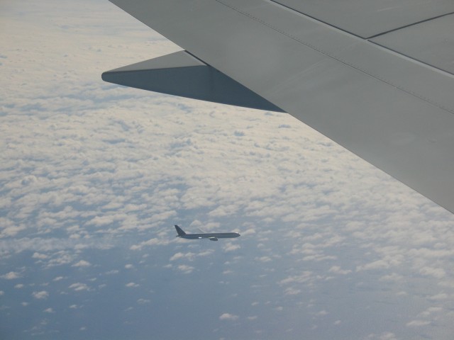 Unsere Boeing 767-300ER. Das ER steht bestimmt für Extended Range. Für so eine lange Strecke eigentlich ein recht kleines Flugzeug. |