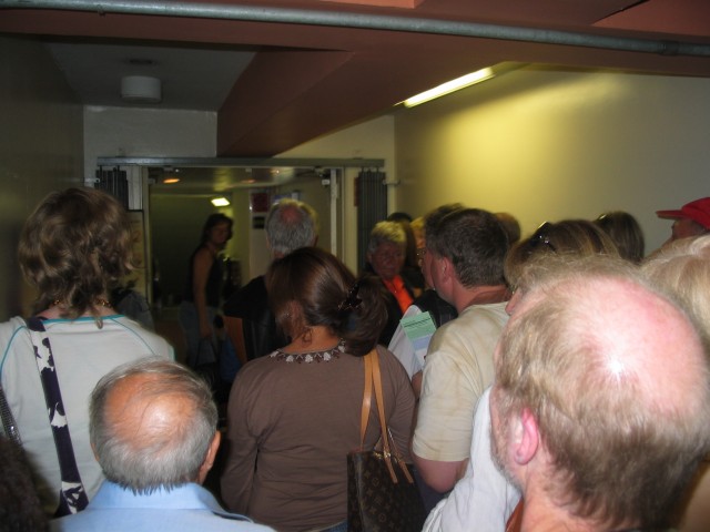 Für dieses Foto muß ich mir von einem US-Amerikaner sagen lassen "I think they don't want you to take pictures here." (Ich glaube, sie wollen nicht, daß Sie hier fotografieren.) Da ich aber wegen dem Warten ein bißchen genervt und auch sauer auf die Amis bin, kriegt er ein "I don't care!" ("Mir doch Wurscht", um es mal frei zu übersetzen) von mir zurück. |