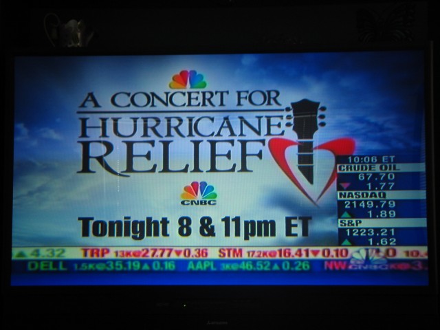 Ein Wohltätigkeitskonzert gibt es auch. Na ein Glück, daß man wenigstens gleich sieht, daß der Ölpreis wieder ein bißchen runtergegangen ist. |