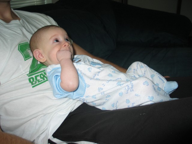 Mein kleiner Neffe ist auch schon wach und kuckt mit Begeisterung zu. |