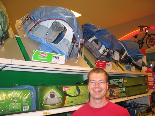 Bei Target kann man auch Zelte kaufen. Und damit man gleich sieht, wie die ausschauen, gibt es eine Miniaturvariante davon im Regal. |