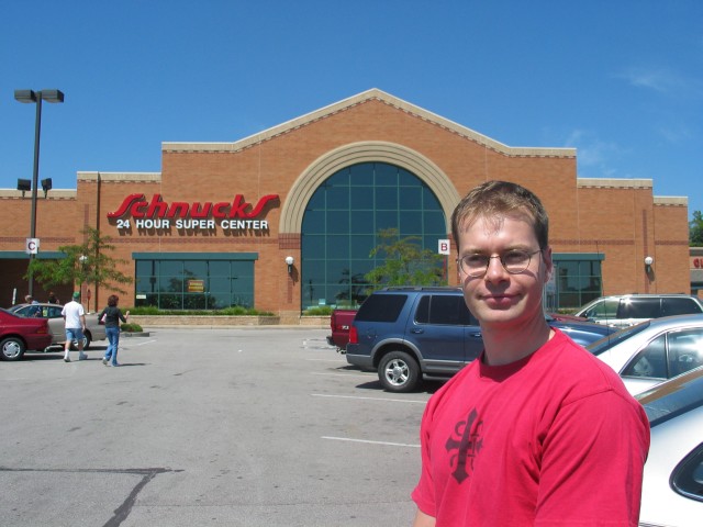 Und hier nun (Trommelwirbel) der Schnucks Supermarkt, wo mein Bruder seit einiger Zeit nachts den Boden schrubbt. Für Geld natürlich. |