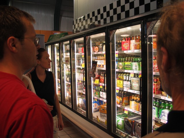 Meine versammelte Familie beim Beratschlagen, was für ein Bier man meinen Eltern nun mal andrehen kann. Wo die doch so passionierte Biertrinker sind. |