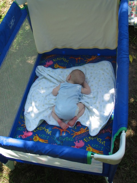 Am besten hat es Daniel. Der hat sein eigenes Bettchen und macht ab und zu ein kleines Nickerchen an der frischen Luft. So wie hier. |