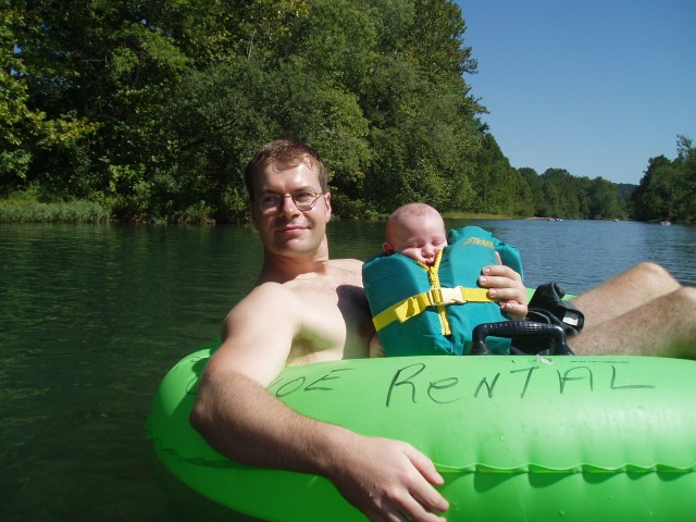 Sogar Daniel bekommt eine Schwimmweste verpaßt und treibt dann mit Jörg den Fluß runter. Das ganze ist ihm aber ziemlich egal, er macht sogar ein Nickerchen. |