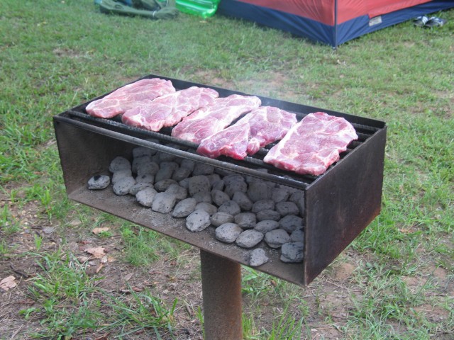 Nachdem wir noch ein paar Sachen eingekauft haben, fangen wir damit an, uns das Abendbrot zu grillen. Es gibt ein paar extrem dicke Fleischbrocken, die ich so bis jetzt nur bei der Raubtierfütterung im Tierpark gesehen habe. Da ich aber vorher schon in die Kühlkiste gekuckt habe, habe ich für mich noch ein paar Hühnerteile organisiert. Bin halt doch ein Mäkelfritze, ich geb es ja zu.