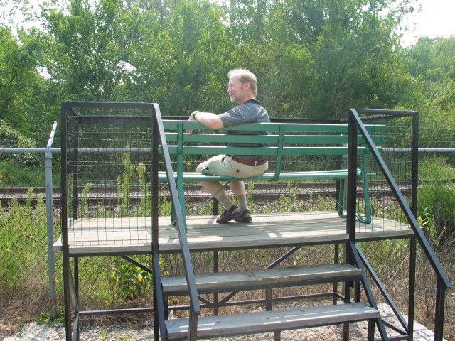Am Museum geht gleich eine Eisenbahnstrecke entlang und so gibt es eine kleine Aussichtsplattform, auf die man sich setzen und nach Zügen Ausschau halten kann. |