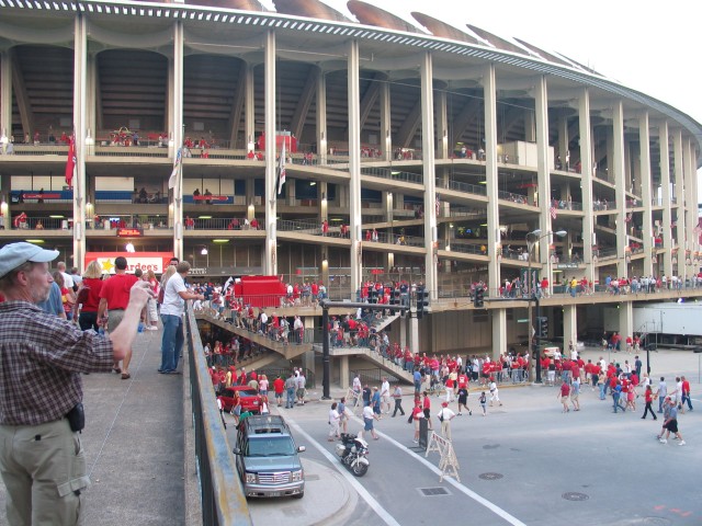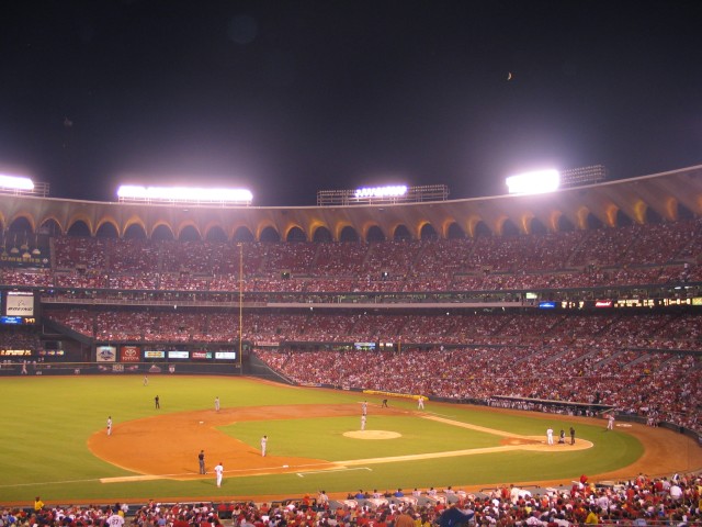 Heute spielen die Cardinals gegen die New York Mets. Eigentlich sollte das kein Problem sein, denn St. Louis ist in der Central Division Tabellenführer. Allerdings stelle ich schnell fest, daß sich die Leute um der Ergebnis gar nicht so einen großen Kopf machen. Das Spiel an sich ist für die Leute zwar schon wichtig, aber es gibt auch viel drumherum. Man kann, typisch amerikanisch, Unmengen an verschiedenen Speisen und Getränken zu sich nehmen und in den Spielpausen werden T-Shirts und diverser anderer Plunder mit Luftdruckkanonen ins Publikum geschossen.