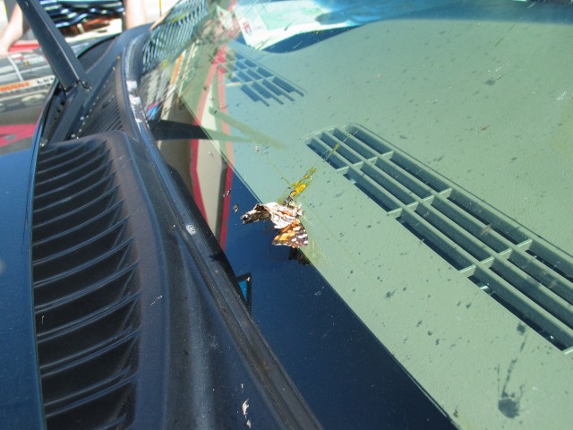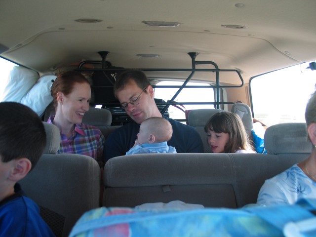 Nur glückliche Gesichter. Das kann sich im Laufe der Fahrt aber auch mal ändern, je nachdem, ob sich die Kinder auf der Rückbank kloppen oder nicht. Das ist ganz besonders toll, wenn Jörg und Amy beide vorn sitzen und ich als Puffer zwischen die Kinder gesteckt werde. |