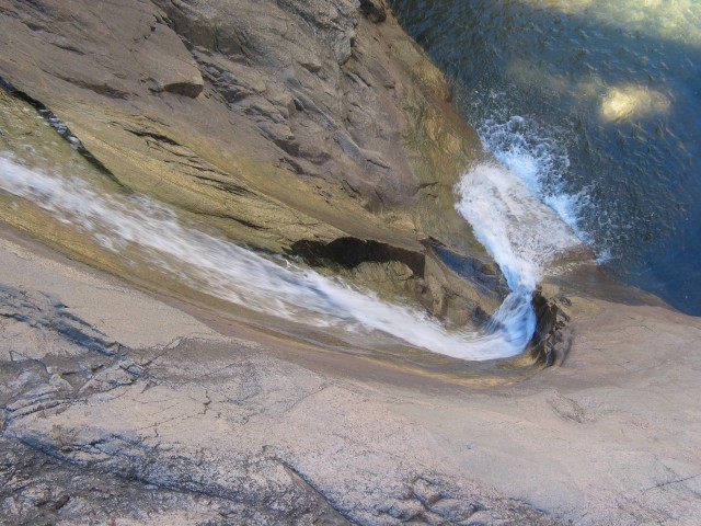 Die Seven Falls. An der Wand geht eine Treppe hinauf, die über 200 Stufen hat. |