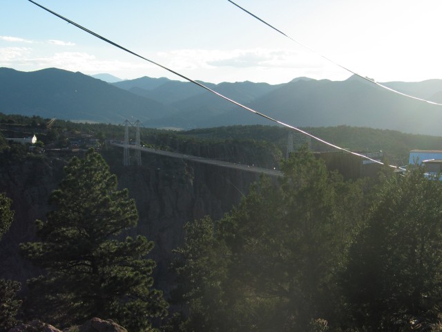 Amy und ich haben nun doch ein bißchen weiche Knie und so geht es erstmal ein Stückchen mit dem Auto weiter und wir machen auch einen kleinen Zwischenstop, um etwas bei einem original echten Mexikaner zu essen. Daniel hat nun schlechte Laune, weil er schlafen möchte und das tut er am liebsten auf dem Bauch. In seinem Tragekorb kann er aber nur auf dem Rücken liegen und so muß das ganze Restaurant ein wenig drunter leiden. Unser nächstes Ziel ist die Royal Gorge Bridge, die höchste Hängebrücke der Welt.