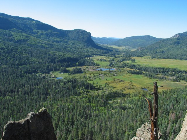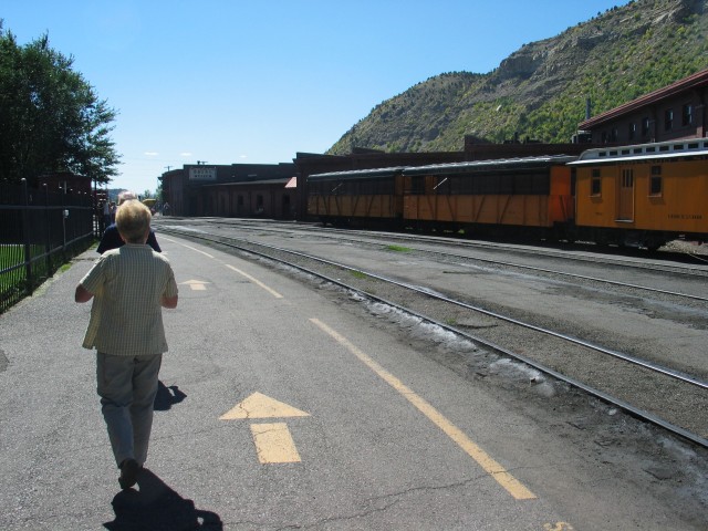 Heute fahren wir zunächst in Richtung Durango, einer etwas größeren Stadt im südwestlichen Colorado. Dort gibt es mal wieder eine Eisenbahn, die Durango & Silverton Narrow Gauge Railroad. Um dort hinzukommen müssen wir über den in der Nacht geschlossenen Wolf Creek-Paß. Als wir auf dem Weg dahin sind, sehen wir, warum man da nicht immer langfahren kann: Die Straße wird verbreitert und dazu müssen ziemlich große Mengen an Fels weggesprengt werden. Es steht sogar ein Hinweisschild da, daß man Sprechfunkgeräte und Mobiltelefone ausschalten soll, damit durch die Funkwellen nicht aus Versehen eine Explosion ausgelöst wird.
