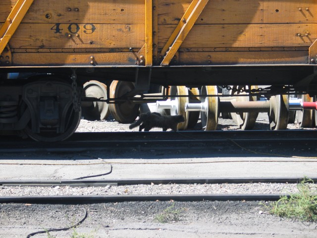 Das pelzige Etwas in der Mitte ist Kitty, die bahneigene Katze, die in ihrem Revier umherstreunt. |