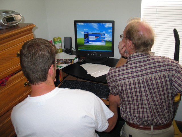 Sogar der Weather Channel unterbricht seine Berichterstattung über den möglichen Hurrikan Rita und bringt ein kurzes Update über das Wetter im mittleren Westen. Drinnen ist es aber ganz gemütlich und so essen wir als Dinner Pot Roast aus dem Slow Cooker, also Rindfleisch mit Kartoffeln, Mohrüben und Zwiebeln, die den ganzen Tag gegart wurden. Jörg kann davon gar nicht genug bekommen und so schlürft er sogar noch die ganze Soße auf. Ein lustiger Bursche. Aber wahrscheinlich braucht er einfach noch ein bißchen Kraft, denn er muß diese Nacht arbeiten.