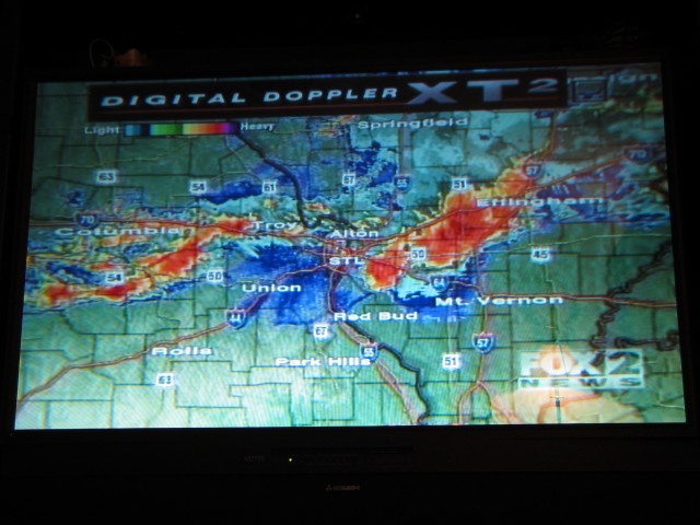 Da denkt man, daß man wenigstens einen ruhigen Abend zu Hause hat und plötzlich tutet der Fernseher und es erscheint eine Unwetterwarnung für den Großraum der St. Louis Metropolitan Area. Das ganze kommt auf allen lokalen Sendern und einige unterbrechen sogar die laufende Sendung und schalten in ihre Wetterredaktionen. Das ganze scheint sich immer mehr zu verstärken, denn plötzlich wird sogar vor Tornados gewarnt.