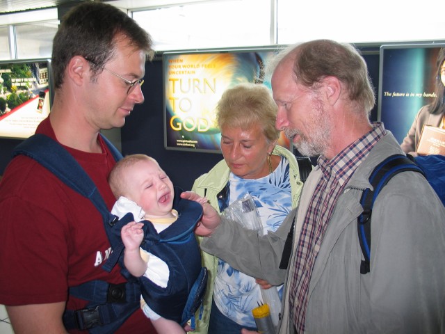 Die Verabschiedung ist zumindest von Jörg relativ einfach, denn er fliegt uns ja morgen schon hinterher, um am Berlin-Marathon teilzunehmen. Den Mokel werde ich aber ganz schön vermissen, gerade jetzt, wo er so dicht am rumkrabbeln ist. Nach der Sicherheitskontrolle haben wir noch ein klein wenig Zeit und so schauen meine Eltern noch einmal in einem Souvenirladen vorbei.