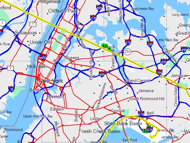 Wie man hier auf der Aufzeichnung meines GPS sieht, sind wir direkt über den Central Park in Manhattan geflogen. |