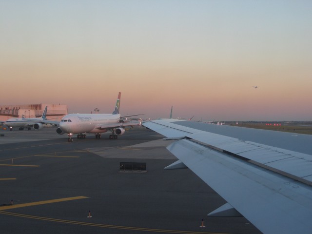 Die Rückreise ist ja immer viel weniger beschwerlich, als die Hinreise. In New York müssen wir nicht mal durch eine Sicherheitskontrolle, sondern befinden uns gleich im richtigen Terminal und müssen nur circa 200 Meter zu Fuß gehen. Da ich ja das Flugzeugessen mittlerweile kenne, hole ich mir vor dem langen Flug noch schnell was bei Burger King. Das schmeckt besser und man bekommt auch viel mehr. Während ich so aus der Papptüte vor mich hin schnabuliere, suchen meine Eltern auch noch etwas, aber wie das so ist, einem 50 Jahre mit deutschem Essen verwöhnten Gaumen macht man nicht so leicht etwas vor und so gehen sie leer aus. Damit wir beim nächsten Mal keine Probleme mit der Einreise haben, lasse ich noch schnell die Überbleibsel vom I-94W-Formular aus den Pässen entfernen und dann geht es auch schon an Bord des Delta-Fluges 78 von New York JFK nach Berlin-Tegel. Das war es dann aber auch erst einmal mit der Hektik, denn nun heißt es warten auf den Start. Es geht vorwärts wie bei Stop-And-Go auf der Autobahn. Als wir nach circa einer dreiviertel Stunde starten, stehen hinter uns immer noch über 20 Flugzeuge, die auch gerne losfliegen wollen.
