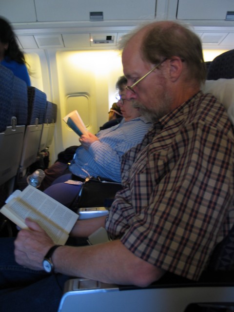 Kaum wird es draußen ein bißchen hell, liest mein Vater schon wieder. |