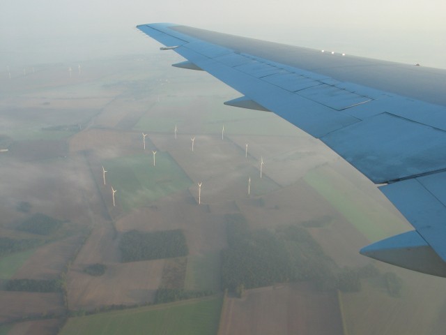 Nach meinem traumatischen Erlebnis mit meinem ersten Jet Lag bin ich extrem vorsichtig und versuche so lange wie möglich, zu schlafen beziehungsweise zu dösen. Erst als das Frühstücks-Croissant vorbeigebracht wird, rappel ich mich auf. Da sind wir schon über den Niederlanden. Der Flug ist nun nicht weiter spannend, das gute ist nur, daß ich jetzt wieder genauere Karteninformationen auf dem GPS habe und bei Autobahnen weiß, um welche es sich handelt. Nach kurzer Zeit gehen wir dann auch schon in den Landeanflug über.