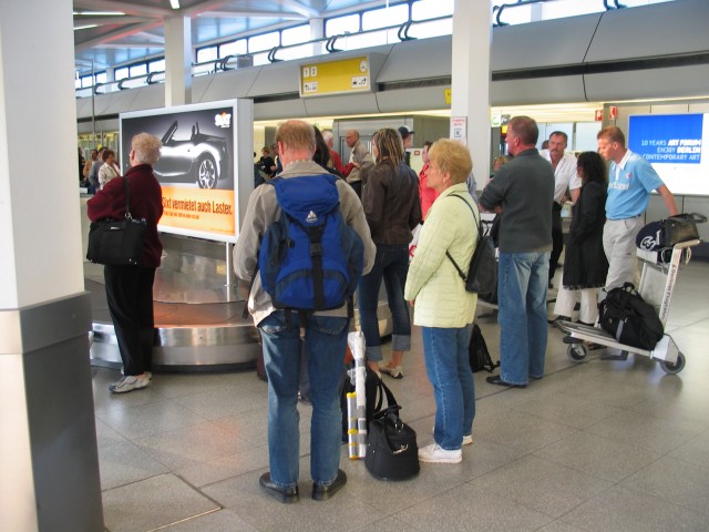 Bei der Einreisekontrolle wird meine Mutter zumindest ein ganz kleines bißchen für die Scherereien auf dem Hinflug in New York entschädigt. Es bildet sich eine lange Schlange in der Brücke zum Terminal und wie wir da so stehen ruft von vorne eine Mitarbeiterin nach deutschen oder europäischen Paßinhabern. Und so dürfen wir an den ganzen anderen Menschen vorbei gehen, warten höchstens zwei Minuten und werden dann mit einem "Willkommen zurück in Deutschland" von einem sehr freundlichen BGS-Beamten begrüßt. Richtig lange stehen die anderen dann aber auch nicht und da ist man ein kleines bißchen stolz drauf, Europäer zu sein und nicht jeden Sicherheitsquatsch mitzumachen.